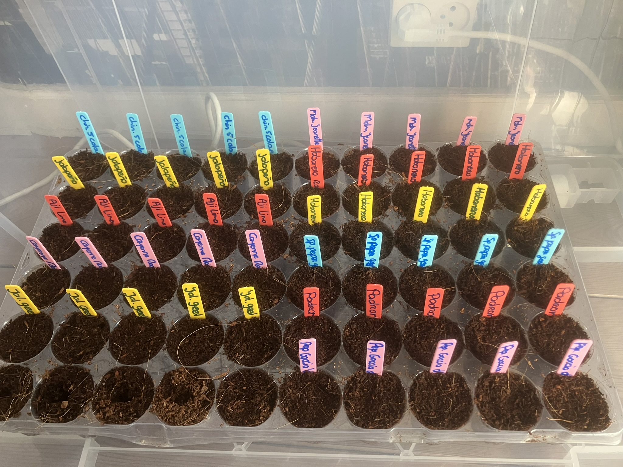 Maar op die plantjes staan dus al jalapeno's op, snack paprika's die eigenlijk al zogoed als rijp zijn. Dus wil niet te lang wachten om naar buiten te verhuizen