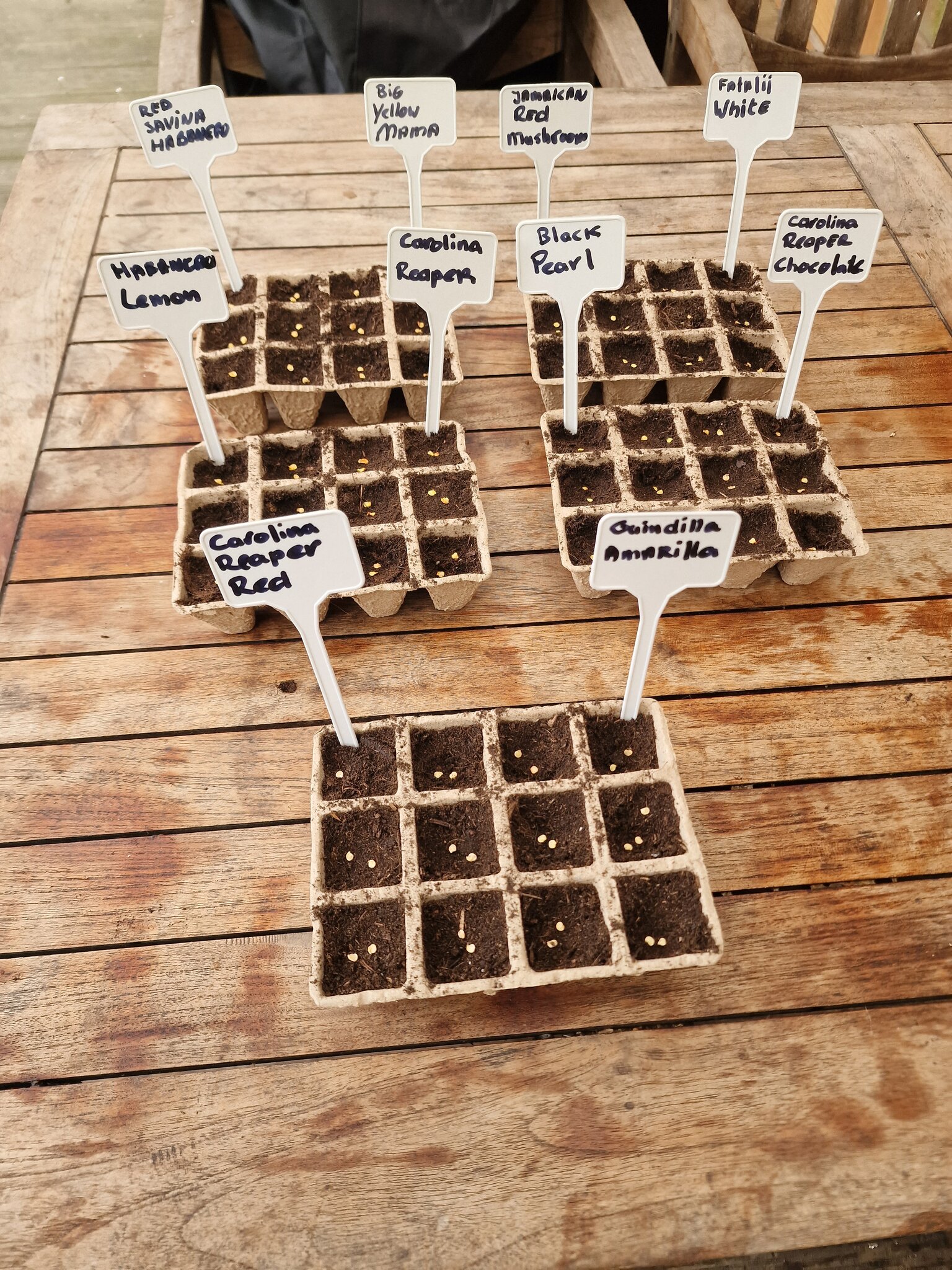 Net een aantal bijzonder hete pepers gezaaid en klaar om in het voorjaar de tuin in te planten. Meest extreem hete die ik kon vinden. Ik hou jullie up to date 😉🌶🌶🌶🔥🔥🔥