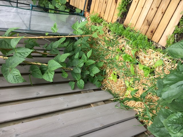 Je kunt ook een beetje stro om je groente en kruiden leggen het houd vocht vast en wordt compost naar verloop van tijd