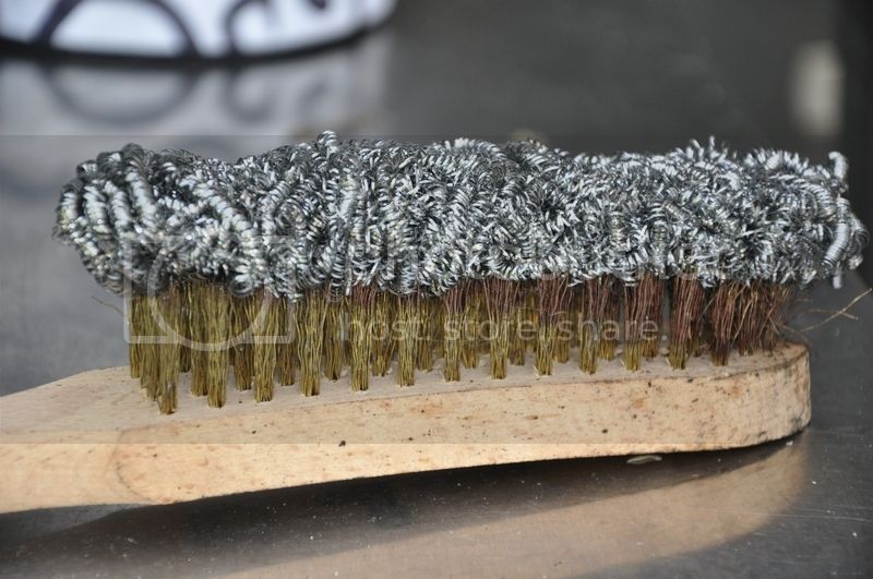 Er zijn vermessingde borstels en messing borstels, dat zijn 2 verschillende soorten. Kwestie van de juiste kopen en dan werkt het prima.Staalborstel met rvs schuursponsje erop gedrapeerd, tegenwoordig gebruik ik een RVS borstel en geen messing borstel meer. Zoals je ziet wordt je genept met messing borstels, ze zijn vermessingd en gaan gewoon roesten.