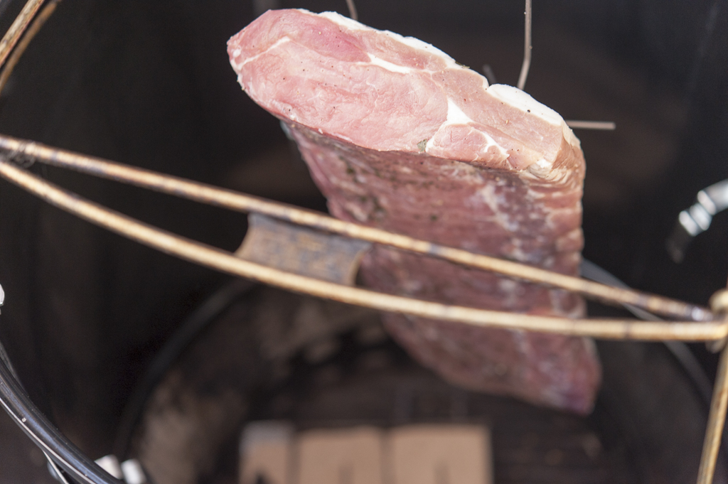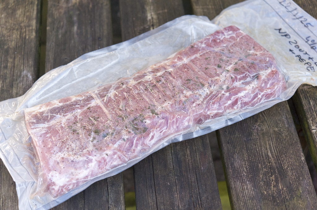 Mijn slager was ook erg enthousiast over dit project en gaf me een goede deal op een hele lende (zeg maar een ribkarbonade zonder bot) waardoor het mijn grootste stuk charcuterie tot op heden is geweest... bijna 4 kilo aan één stuk!