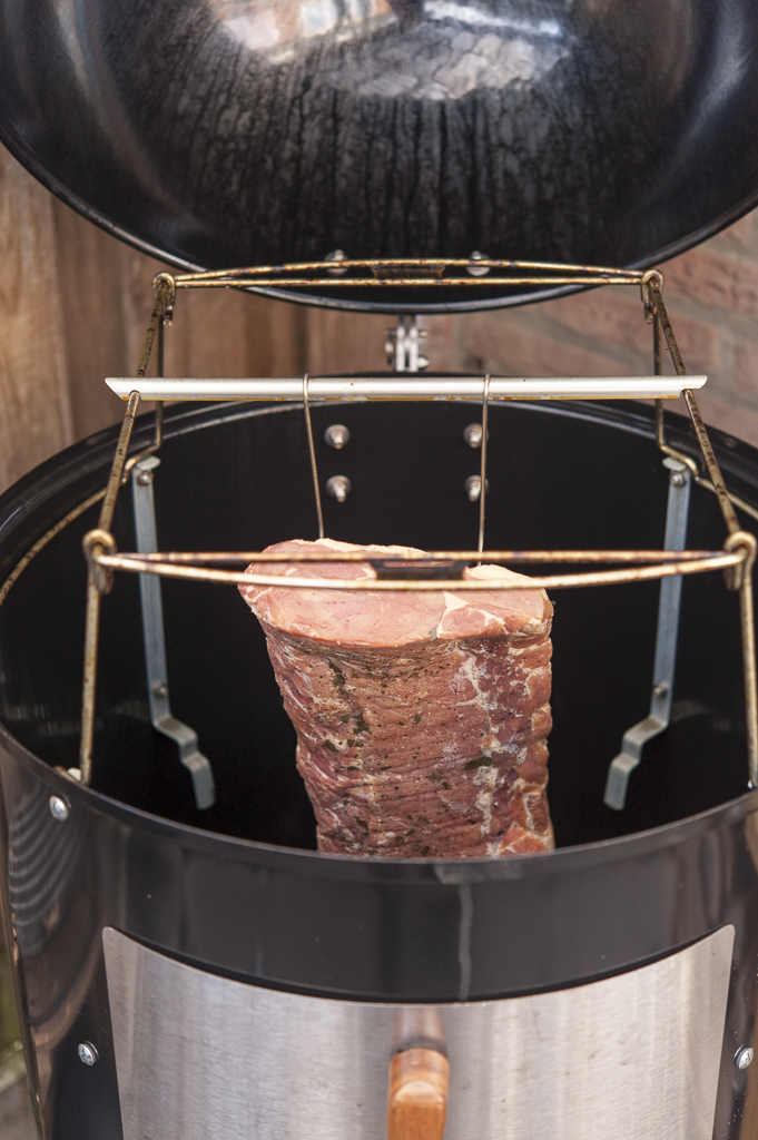 Ik bedoelde waarom gaar je hem niet op de BBQ? Warm (roken) oid?