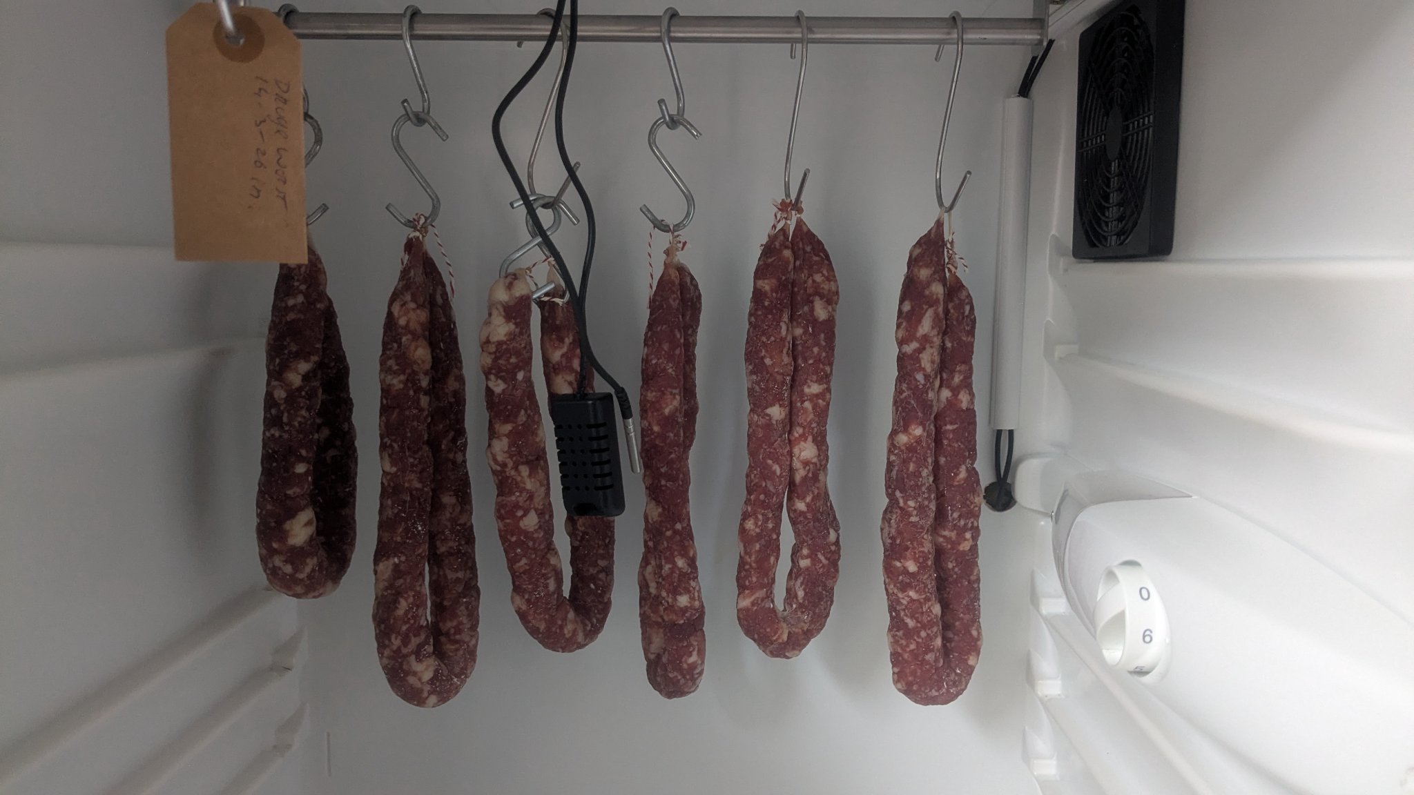 Heb je er een gewogen toen je met drogen begon? Op basis van de gewichtsafname kun je beter volgen hoe het drogen verloopt. In plaats van puur op tijd.Tijd voor een kleine update, de worsten hangen er mooi bij!
