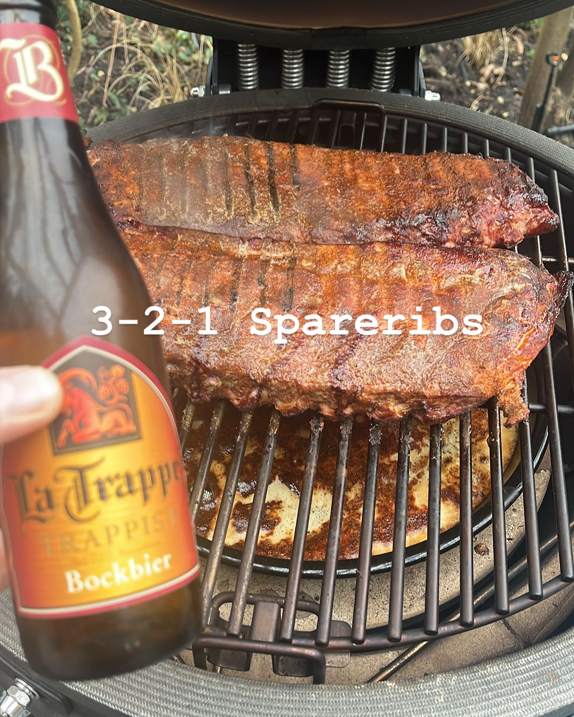 Vandaag voor het eerst spareribs gemaakt met de 3-2-1 methode.