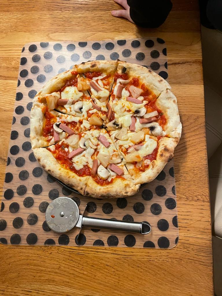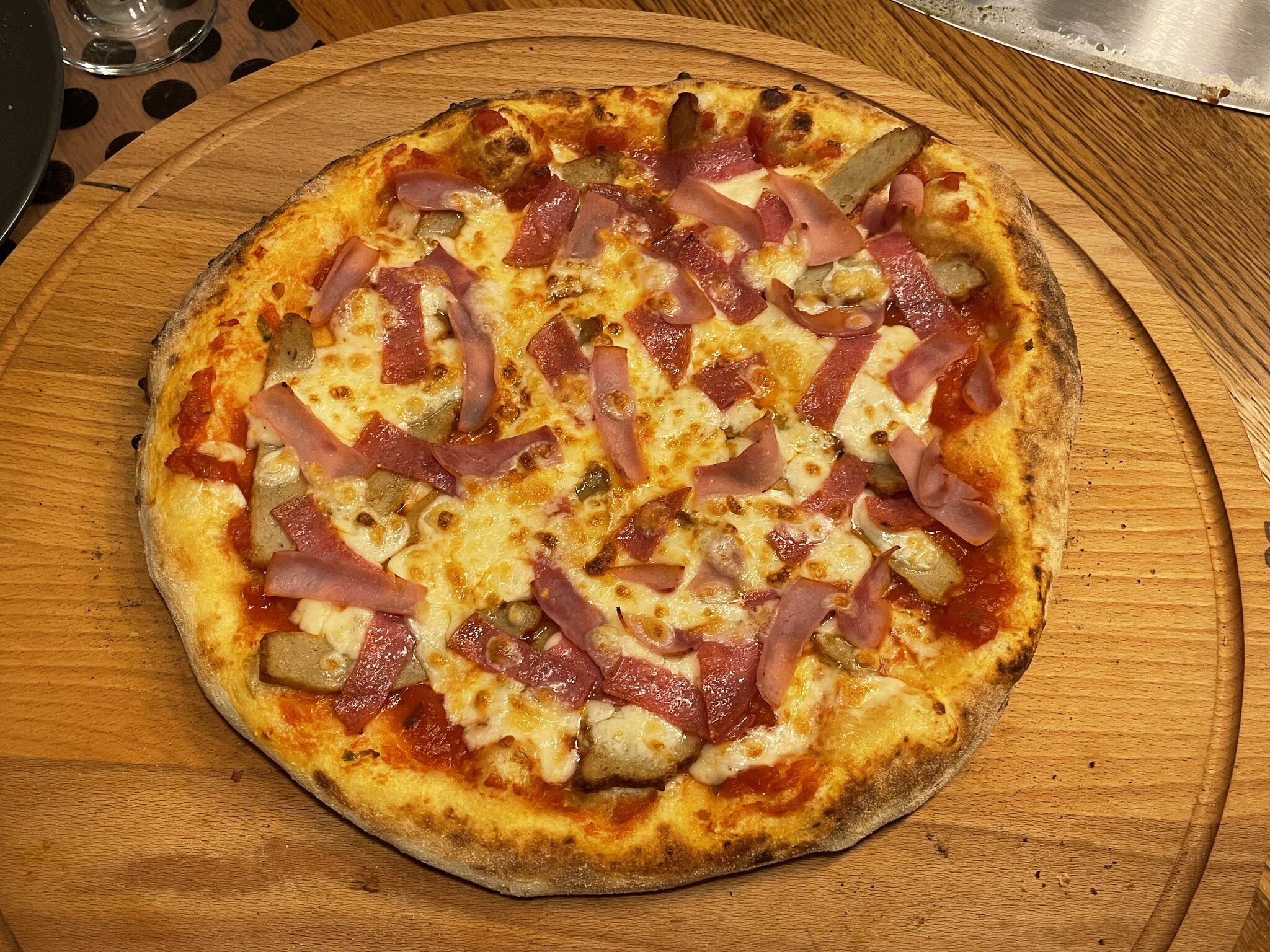 Mee eens. Als we gasten hebben. Zelf deeg laten stretchen, beleggen, op de pizzaschep leggen en hem dan op de Ooni zien te krijgen. Al dan wel of niet gepaard met Oh of gevloek.