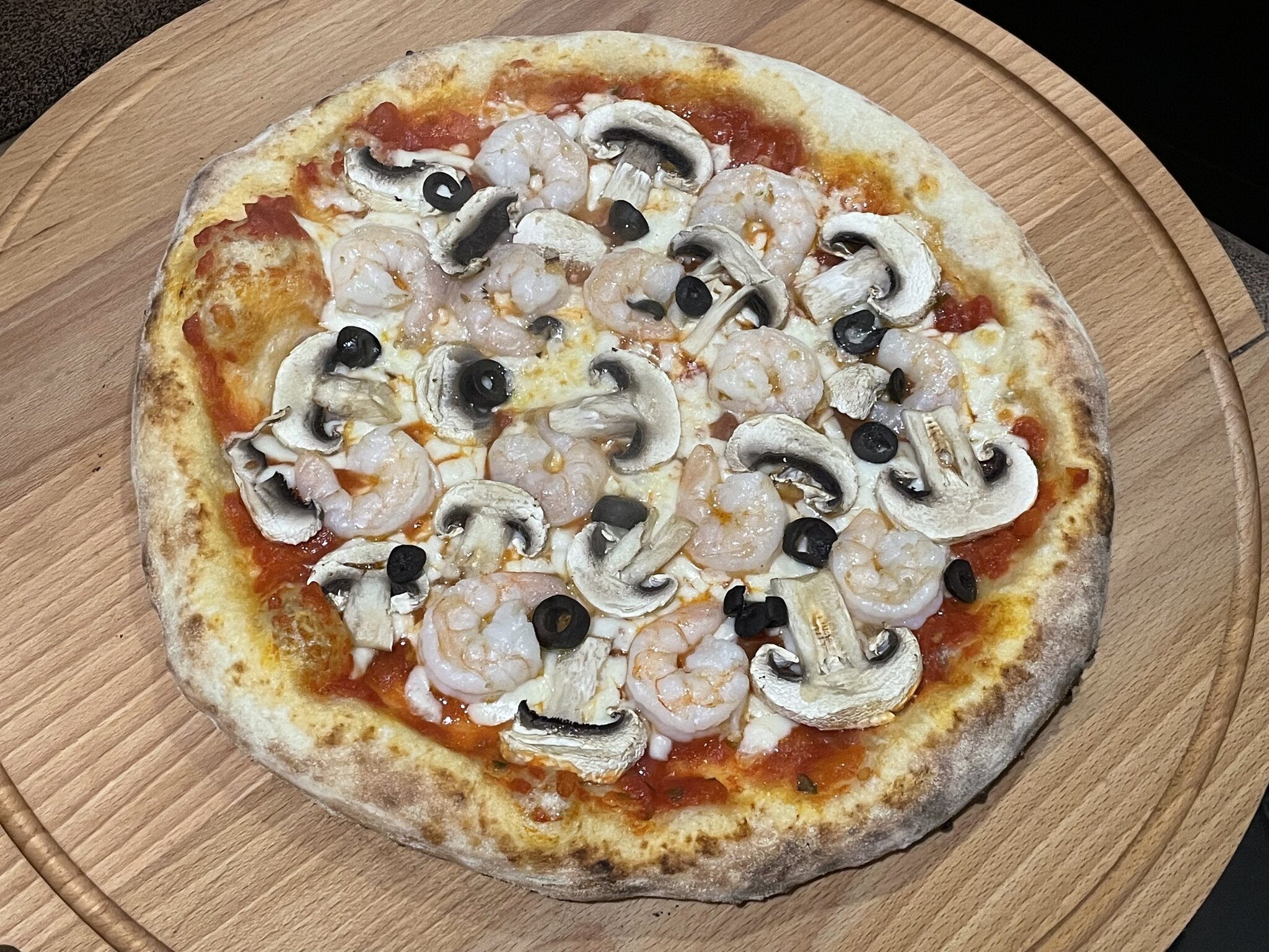 Vanavond weer ‘geoefend’ met de ooni. Deeg 48 uur in de koelkast en 5 uur op kamertemperatuur laten rijzen. De smaak was echt heerlijk!