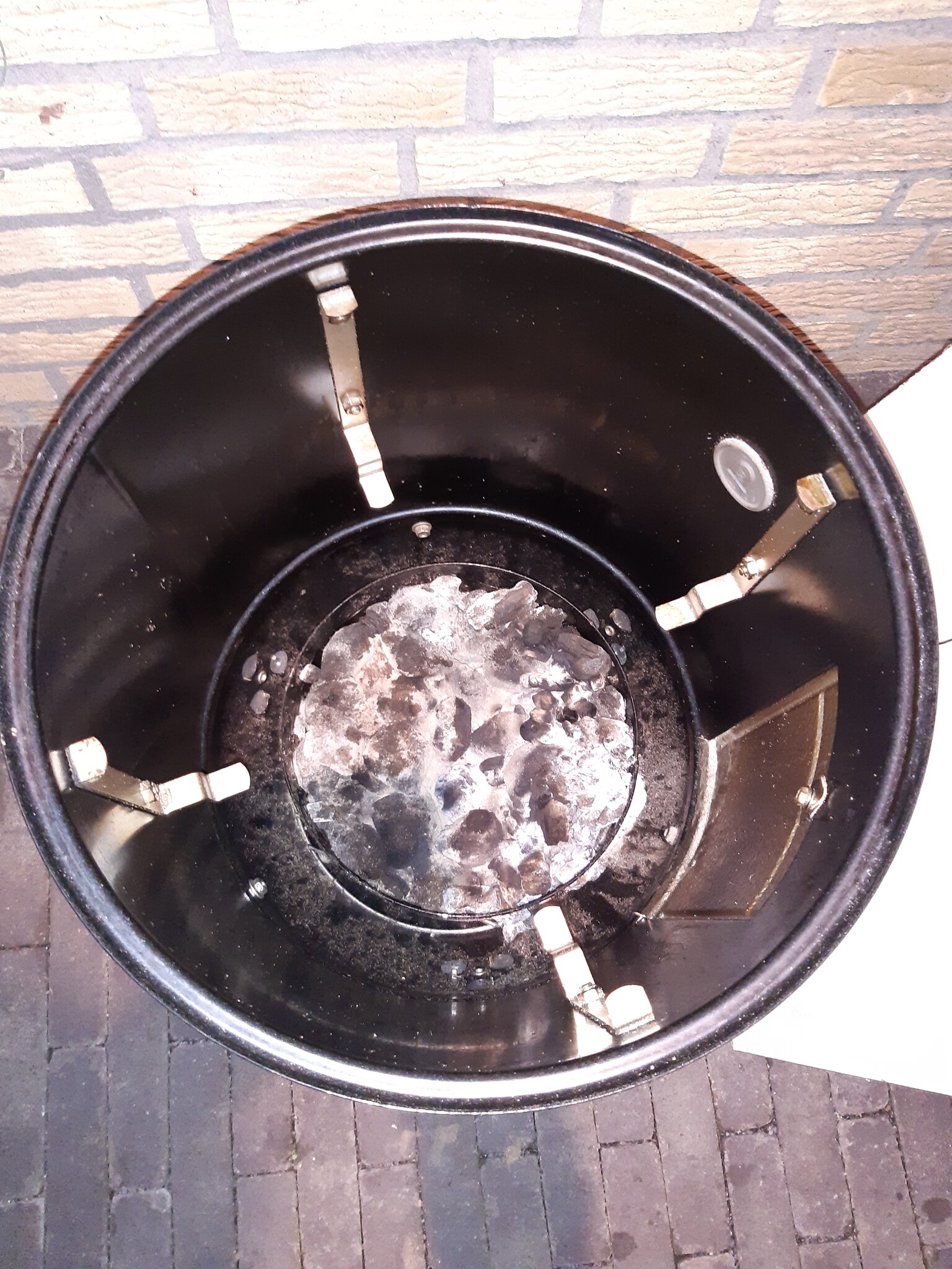 Vandaag aan de slag geweest met de Golden Flame briketten. Een 5 uren sessie op mijn nieuwe WSM leek me een leuke gelegenheid. De WSM gevuld met briketten en hiervan ca 15 briketten in de starter (minion methode). Het viel meteen op dat de briketten iets langer nodig hebben om aan te gaan maar met een half uurtje waren ze zover. Gedurende de 5 uren hebben de briketten dat gedaan wat je ervan mag verwachten, de bbq op temperatuur houden en dat deden ze ook nog eens stabiel. Verder zuinig in verbruik. Op de foto zie je wat er nog over was na 5 uren. Helemaal niks mis met deze briketten.