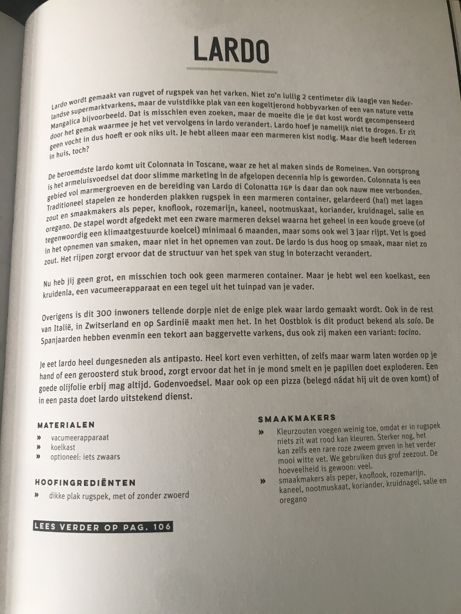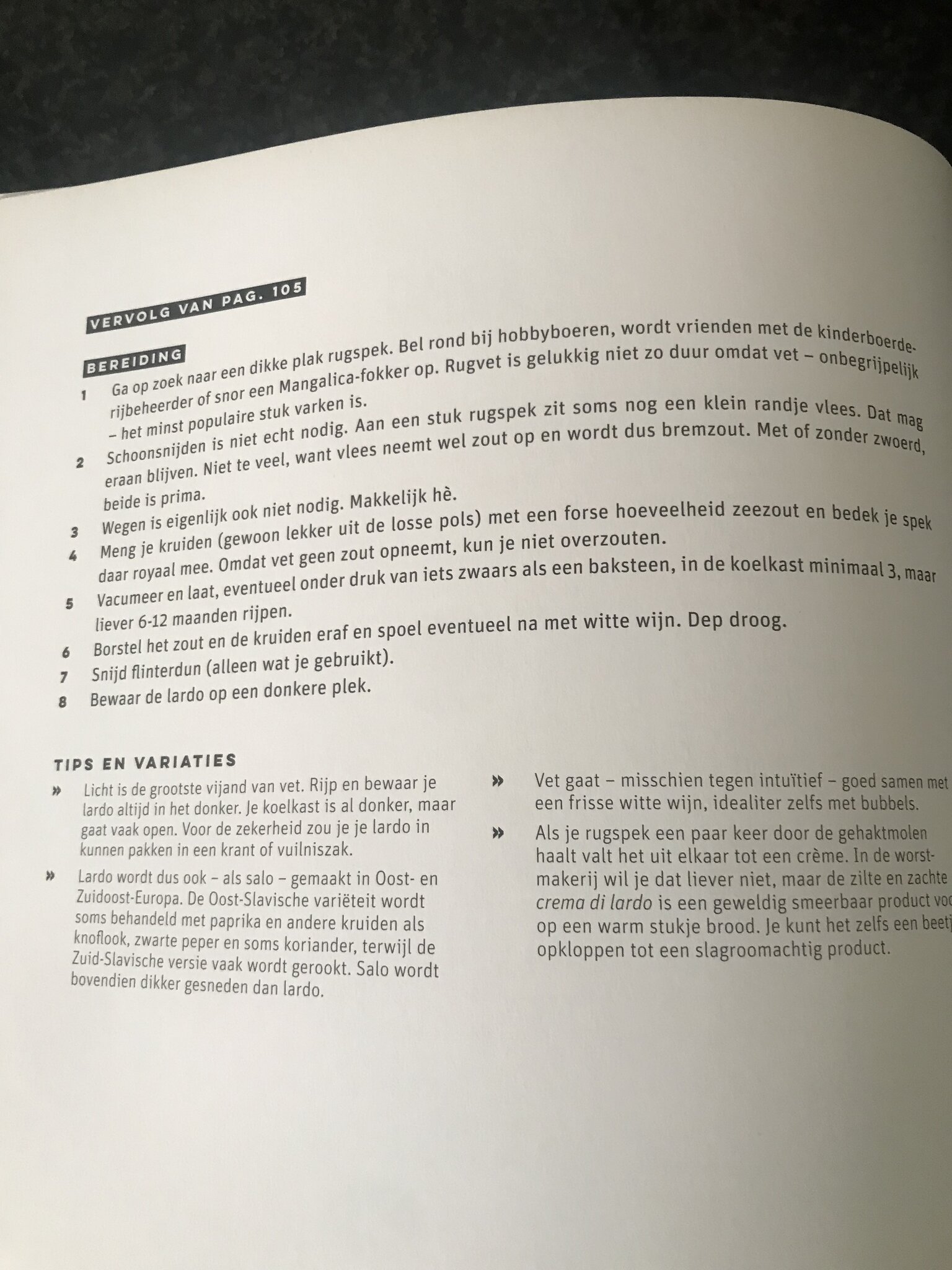 Maar dat recept voor lardo! Daar ga ik eens achteraan.