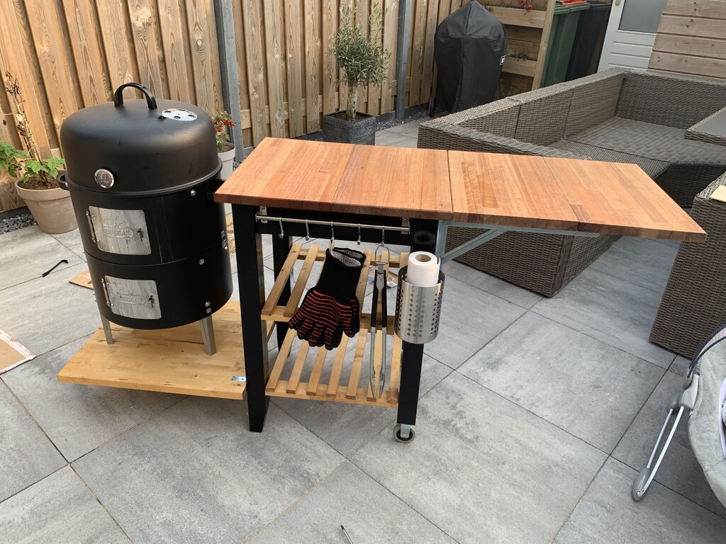 Wat een gaaf topic! Ik ben van plan ook een bekvam tafeltje te gebruiken i.c.m. een mini kamado van de Aldi. Deze waren in de uitverkoop in Frankrijk, voor 44,99 euro kon ik 'm niet laten liggen.