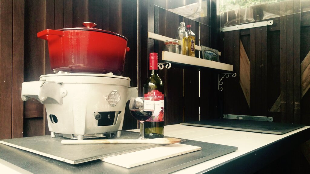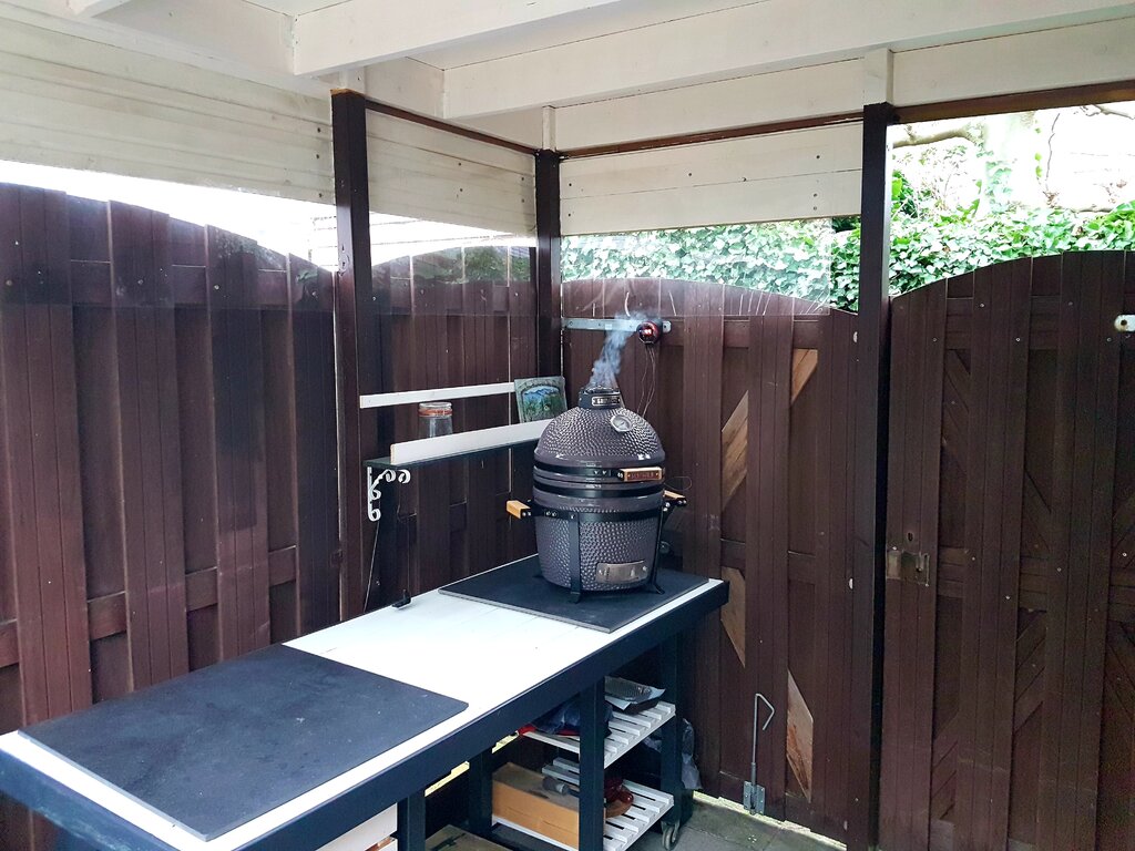 Precies dit wilde ik ook typende diameter van je Q plus 4 is veel te groot, aan elke zijde 1 cm overhouden, dus plus 2 is meer dan voldoende. Ik zou daarnaast met een steeksleutel de handvaten eraf halen, toch niet meer nodig. Je meet dan de hoogte van je Q ter hoogte van je handvat. Wat betreft je onderzetters, hij staat al in een nest, niet meer nodig dus. Lucht kan er al onderdoor en geen direct contact met ondergrond. je kan er nog wel een mooie steen o.I.d. onderleggen.