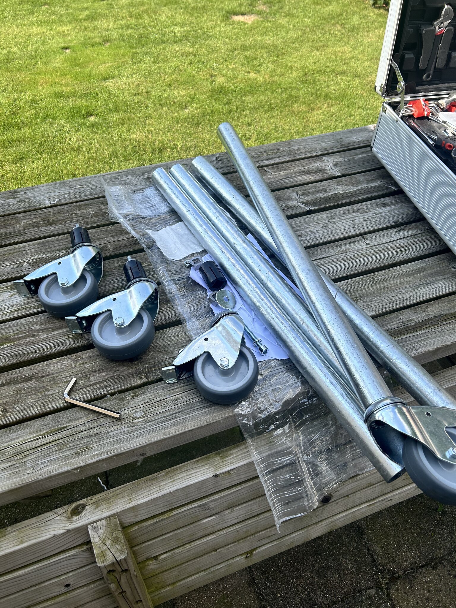 Dus online steigerbuizen op maat besteld met ‘expanders’ en wielen. Vrij eenvoudig klusje.