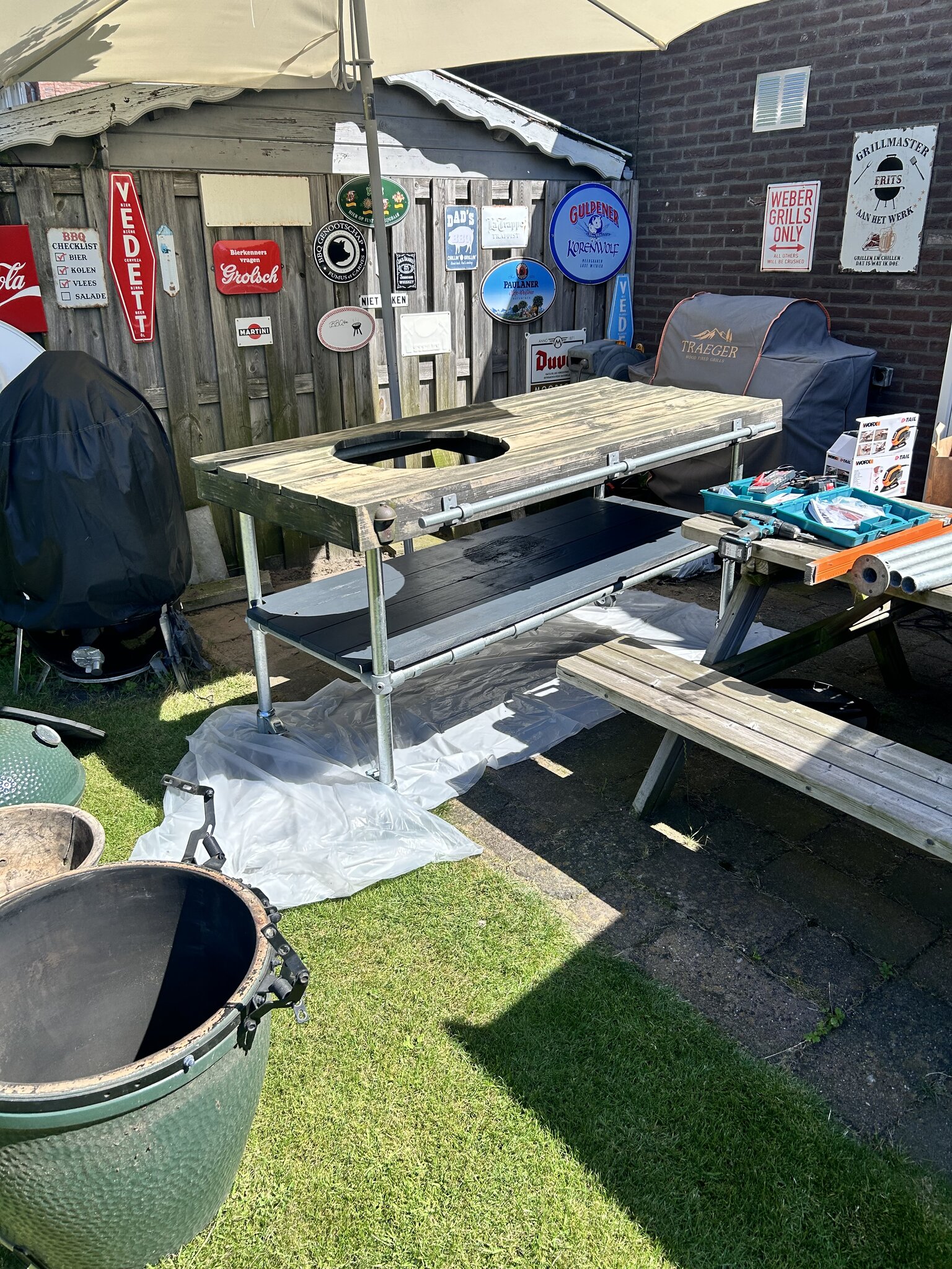 Bernhard de tafel was al best hoog, met nog eens 10 cm erbij zou het absurd hoog geworden zijn.dat was een dagje noeste arbeid maar het ziet er weer spik en span uit !