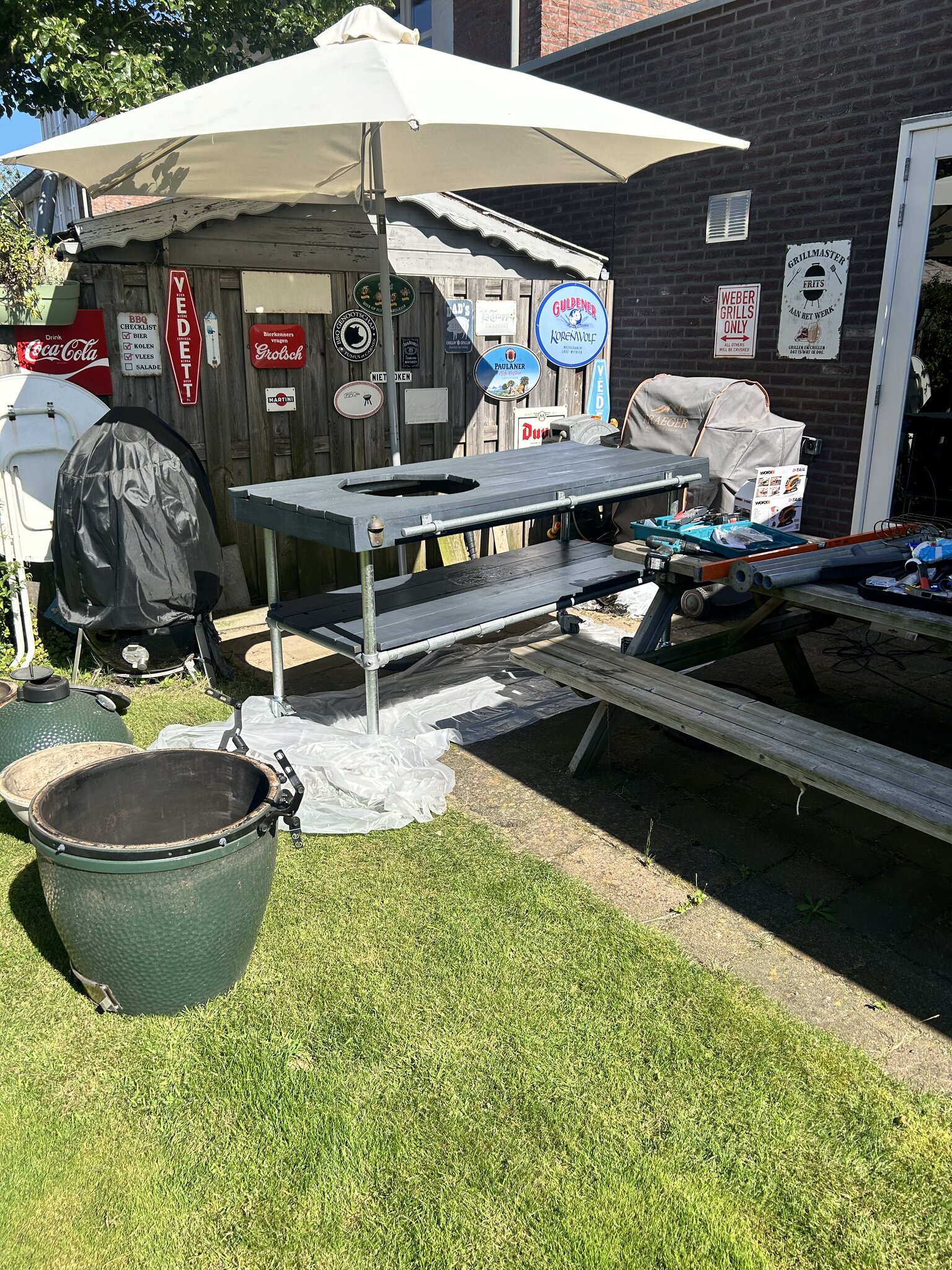 Toen ik mijn huidige barbecue tafel ontwierp leek het me handig om er geen wielen onder te zetten omdat hij zo moeilijker te stelen zou zijn.