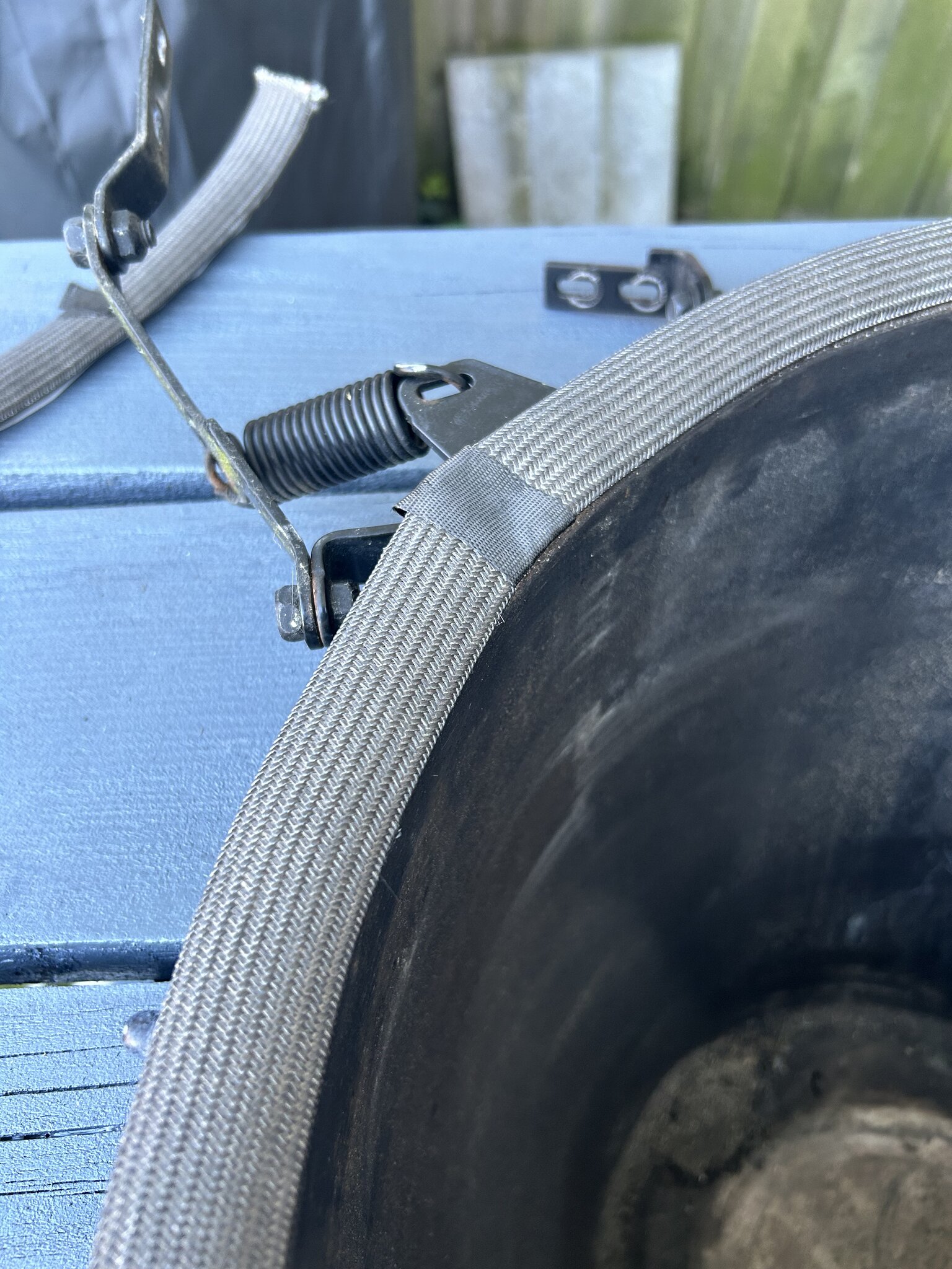 Nu alleen het scharnier er weer terug op, wel gelijk nieuwe schroeven en moeren erop.