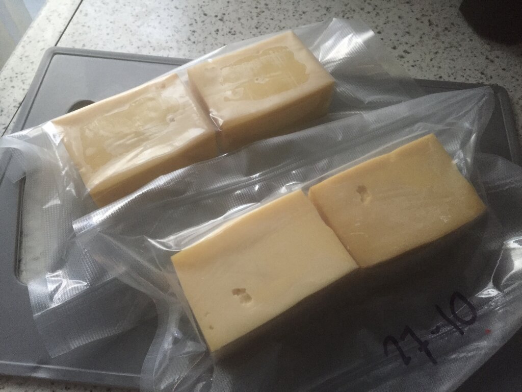 Ik had 2 verschillende soorten kaas en deze 2u laten roken waarna vacuum verpakt om een weekje in de koelkast te laten liggen. Daarnet wel stiekem een stukje geproefd en nu weet ik waarom deze eerst een week de koelkast in moet. Dat was effectief in de asbak bijten