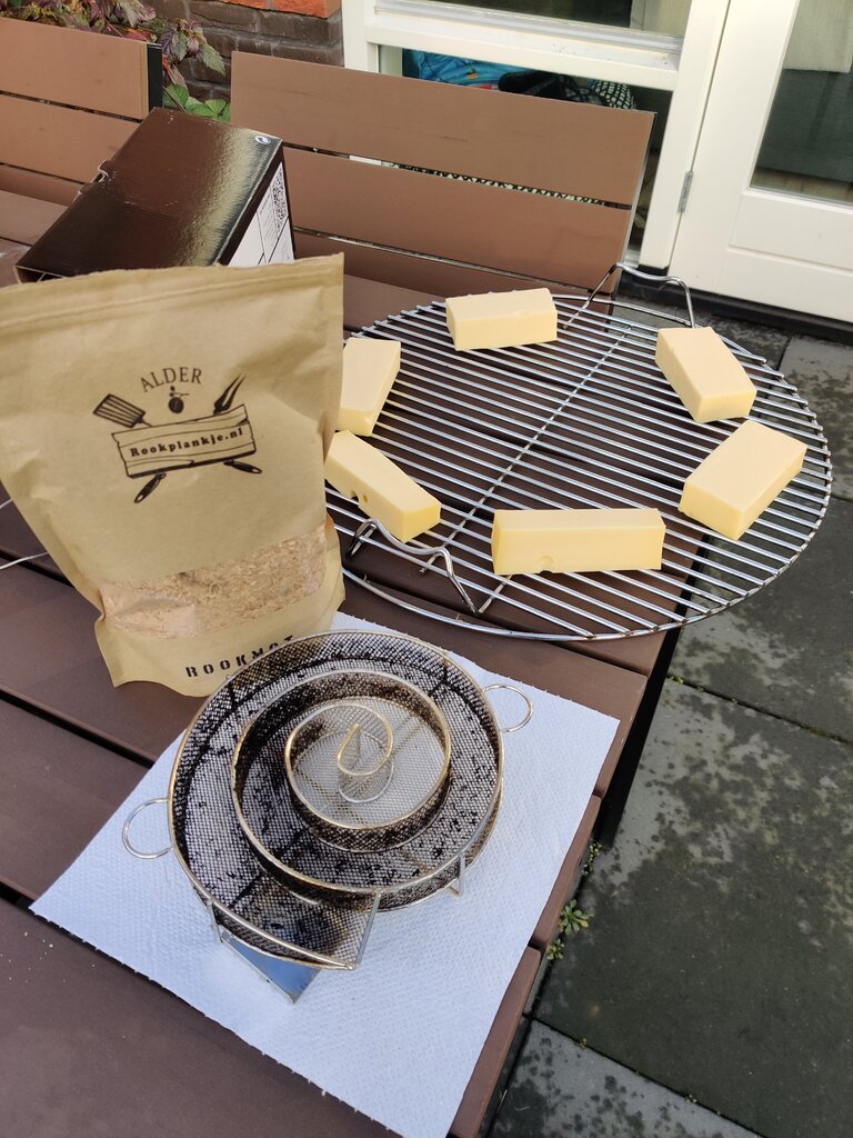 Moet zelf ook eens opzoeken wat er allemaal koud te roken is. Zalm, kaas, olijfolie en zout weet ik al.