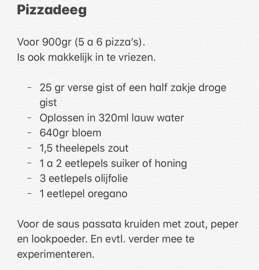 Ik gooi ook altijd wat bollen in de vriezer. Maar dan moeten we eigenlijk al wel een dag van te voren weten dat we pizza gaan eten.