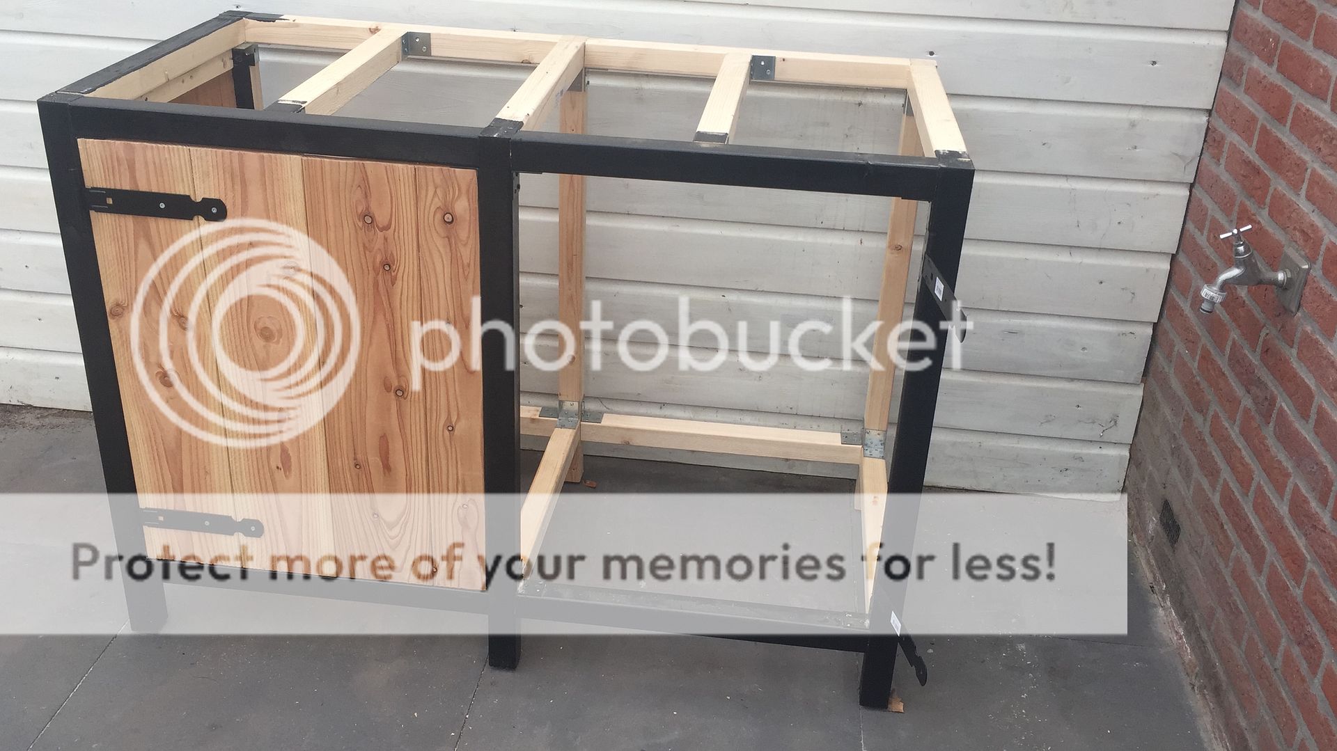 Omdat ik vooral meelees, maar het wel heel leuk vind om andermans projecten te zien, bedacht ik mij om mijn project ook maar eens te laten zien. Wellicht inspireer ik er weer andere mensen mee! Ik heb achter het huis (aan het huis) een overkapping en wilde daar graag een buitenkeuken-achtig meubel neerzetten. Dit meubel moest in ieder geval ruimte bieden voor mijn spulletjes en alles netjes opbergen.