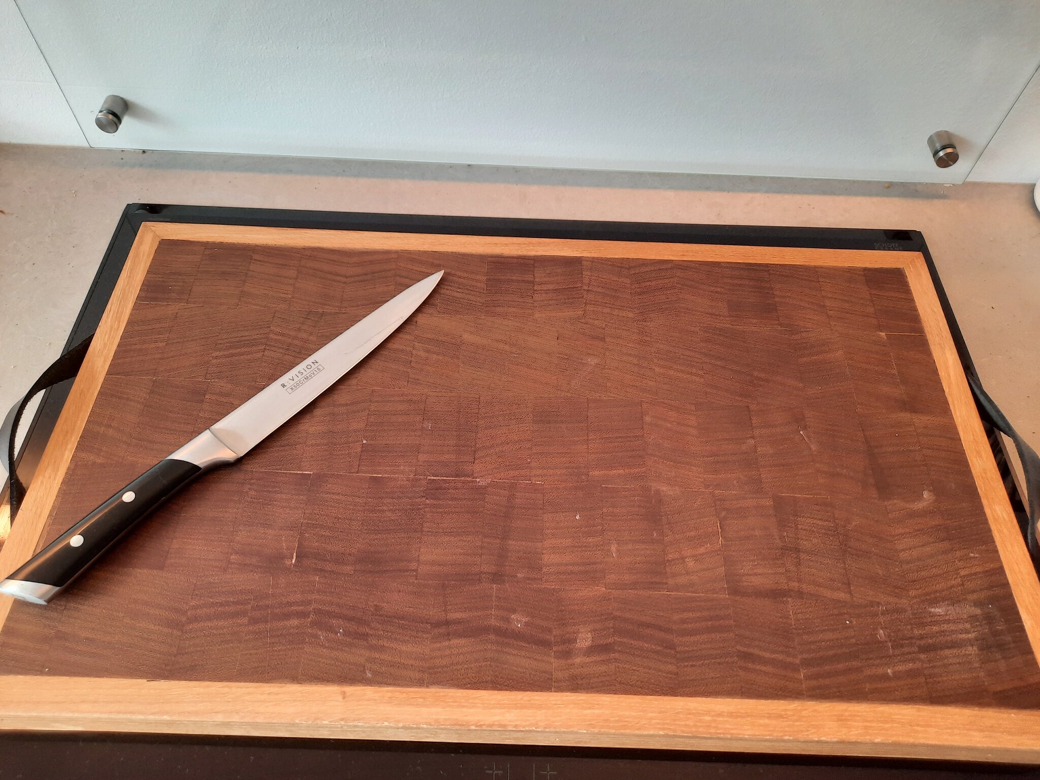 Dat zijn nog eens vrienden!Gister kwam een maat effe langs. Had zelf een snijplank gemaakt voor me 60 x 40 cm. Altijd leuk om te krijgen.