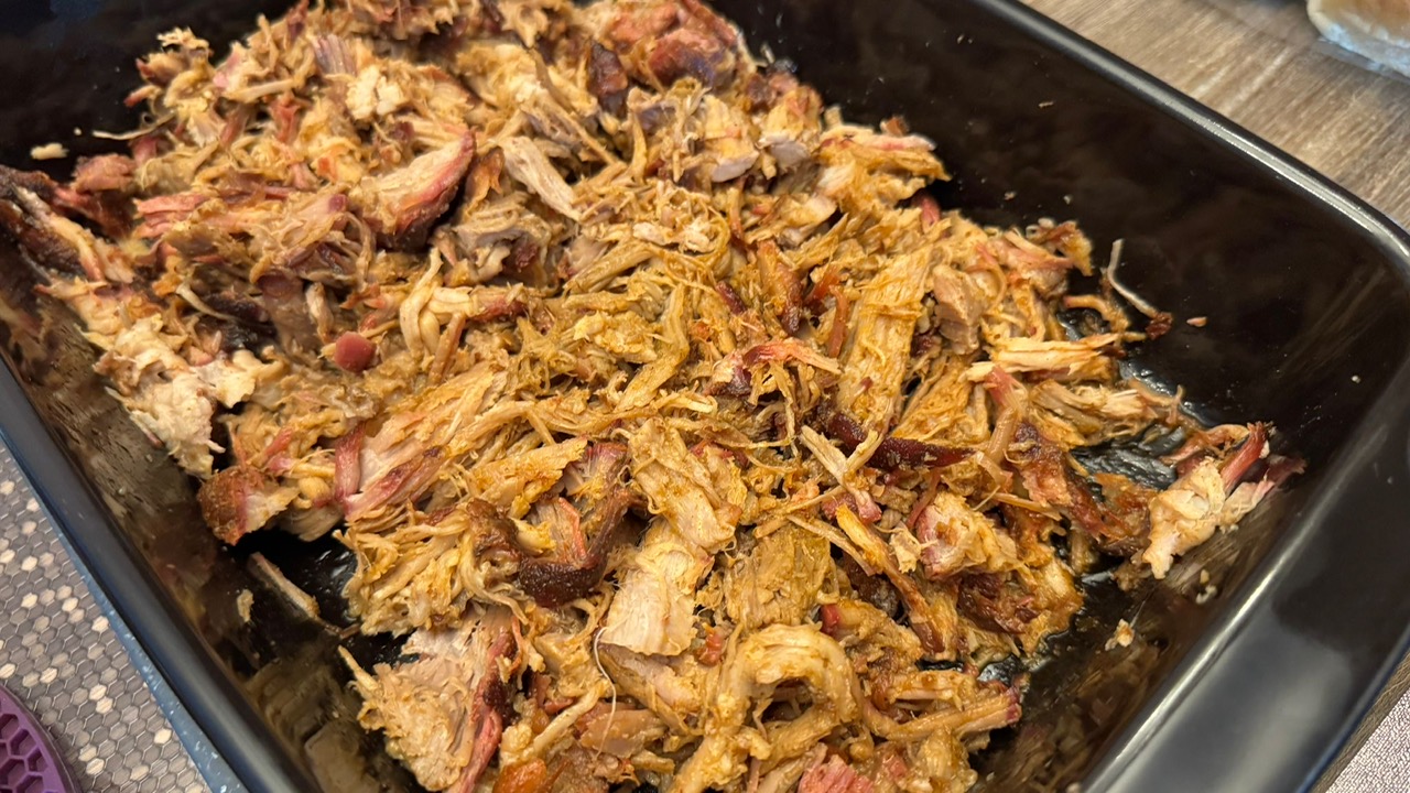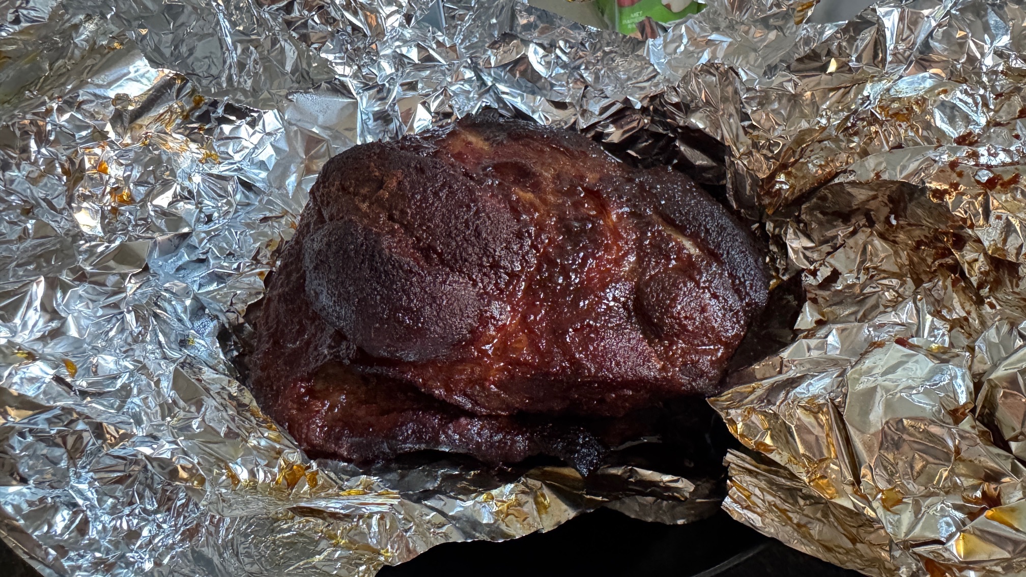 Ik had met de pulled pork wel een uitdaging om de temperatuur van de Bastard stabiel te houden. Ik heb een Thermoworks Smoke gebruikt. Regelmatig heb ik de lucht toevoer moeten aanpassen. Minimale aanpassing zonde voor een langzame toename of afname van de temperatuur. Ik probeerde de temperatuur op 121 graden te houden maar bij de 126 graden een aanpassing gedaan en dan weer bij de 111 graden en dat regelmatig heen en weer. Ging langzaam dus liep iedere 20 minuten naar de bbq denk ik.