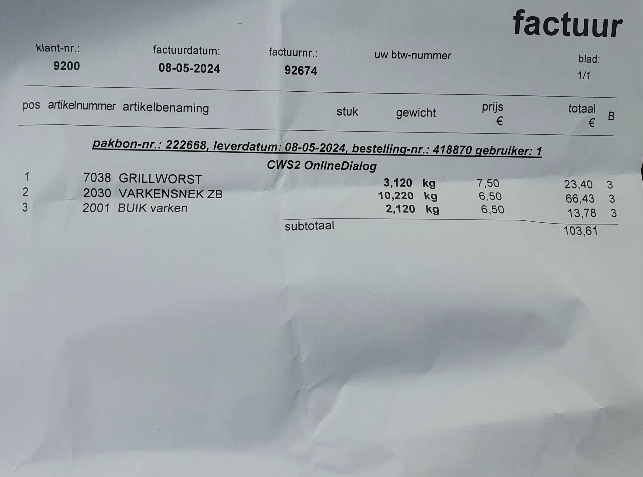 Toch geen stukke van 3kg maar mag niet klagen