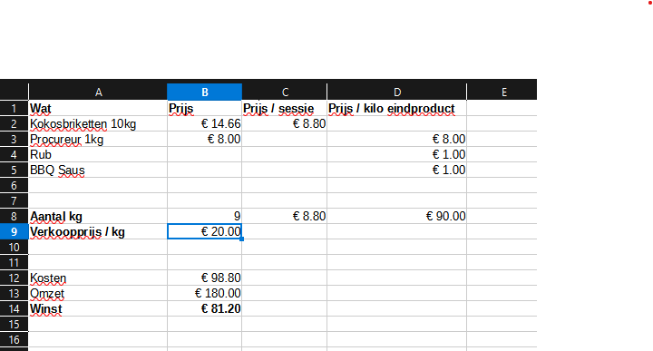 Ben zelf dol op excel, dus heb inderdaad daar alle berekeningen in gemaakt. Voor alles wat ik verkoop overigens. Ook handig voor recpten hoeveelheden etc...@WouterM. leuk dat je dit met ons deelt!