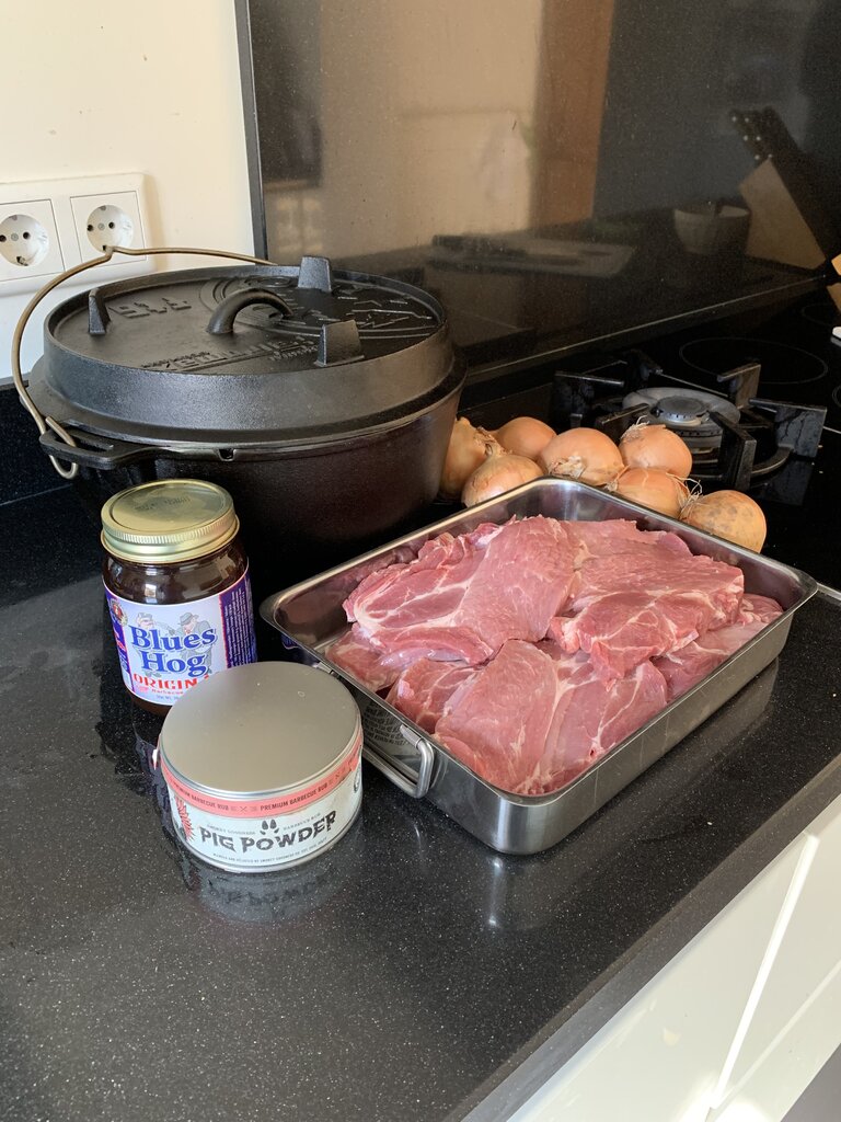 Ik had de porkrub van Smokey goodness gebruikt. Maar die kan je natuu ook zelf maken.
