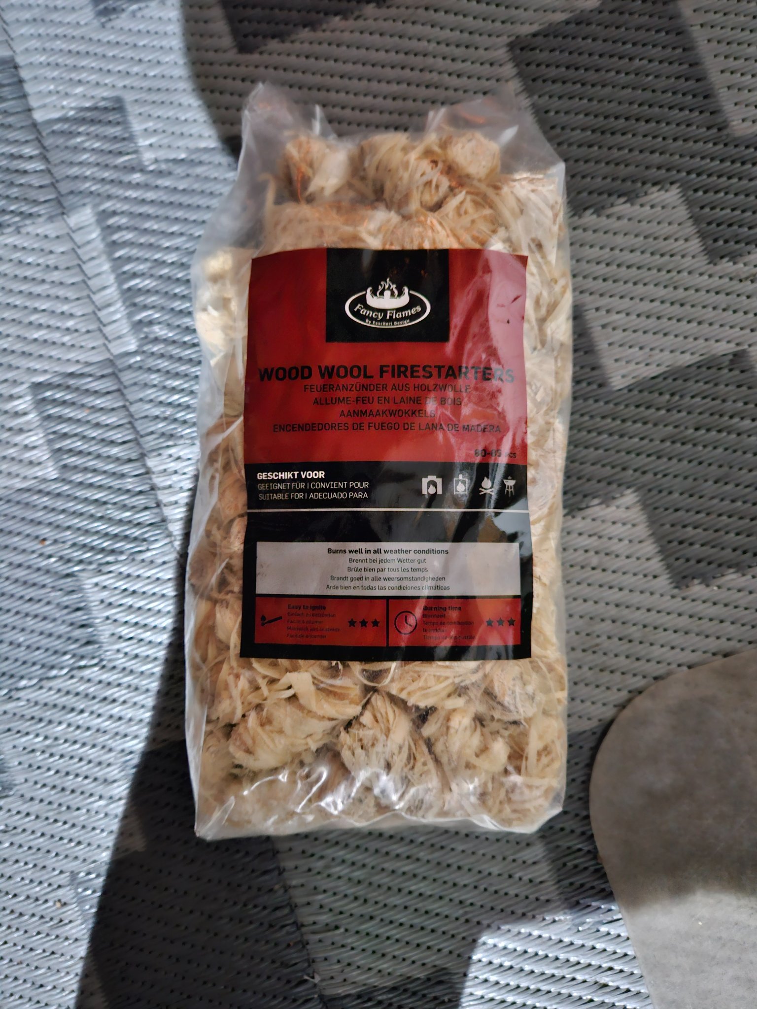 Bruine aanmaakblokjes 32 voor ik meen €1.20. En zoals ik al zei, ik heb een standaard voorraad van 150 stuks in huis voor de houtkachel.Wokkels zijn niet zo duur.. ik haal ze bij de tuincentrum, liggen hier bij de vuurkorven. Prijs €6. Voor 80 wokkels.