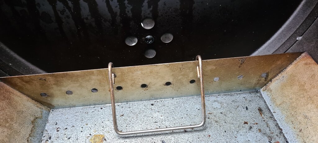 Vanochtend lieten de bbq goden mij al weten dat het wel goed zou komen door de zonnestralen meteen te laten weerkaatsen op het matzwarte staal. Na een snelle aanpassing aan de aslade ( stukje uitgeslepen en wat gaatjes erbij ) voor de lucht stroom, gingen we van start.