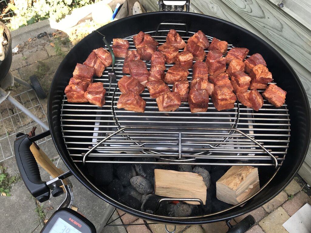 Vervolgens op de Weber met een paar flinke chunks appelhout: