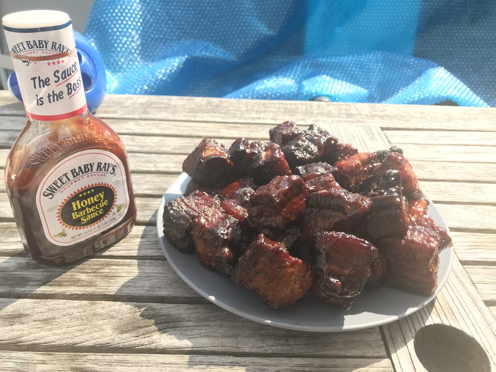 Na een bbq-loze vakantie (toch maar ook iets mobiels aanschaffen), vandaag weer lekker aan de slag gegaan. Ik had nog een stuk varkensbuik zonder zwoerd van het 'zweeds boerderijvarken' (Hanos) liggen van iets meer dan 2 kg. Daar moest ik dan toch eindelijk maar eens de Noskos Pork Belly Burnt Ends Ⓡ, van maken. Zo gezegd zo gedaan.