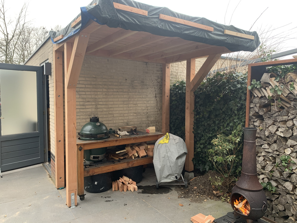 Vorig jaar een leuk meubeltje geknutseld voor de Egg. Maarrrr... toch was de grote wens nog steeds wel een overkapping met buitenkeuken.