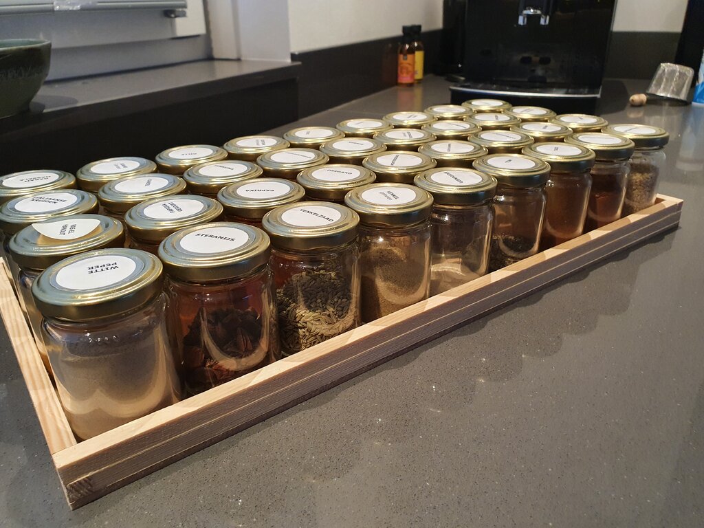 Ik haal mijn kruiden met name bij de Hanos/sligro. Van Beekum (online) is ook een goede winkel. Met name paprikapoeder ect koop ik in grotere hoeveelheden en deze stop ik dan in wat kleinere potjes (100ml) in de keukenla. (heb er nu en bak omheen en nog meer potjes..). Bekijk bijlage 15291