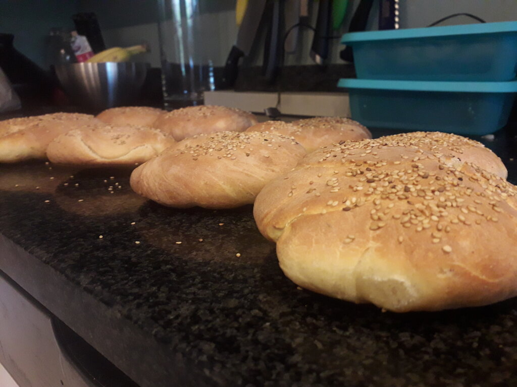 Na in totaal iets meer dan 2u rijzen gingen ze de oven in en kwamen ze er net iets te plat of te weinig bol uit naar mijn zin.