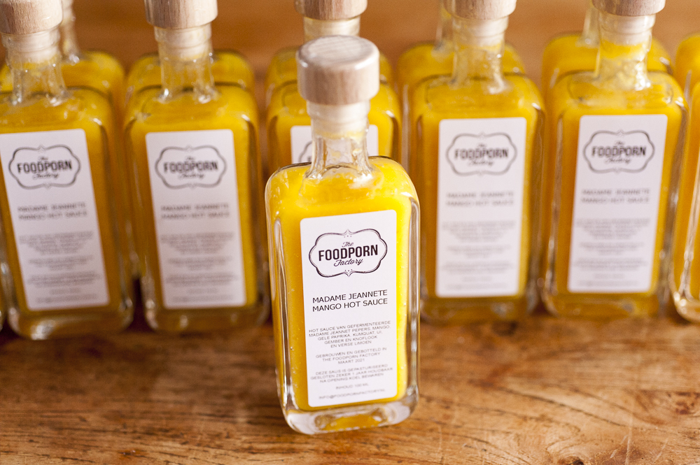 Daarom gaat er zo'n mooi flesje saus naar Vriend Marcel op de post. De rest gaat lekker in de koelkast en blijft nog zeker een jaar lang goed.