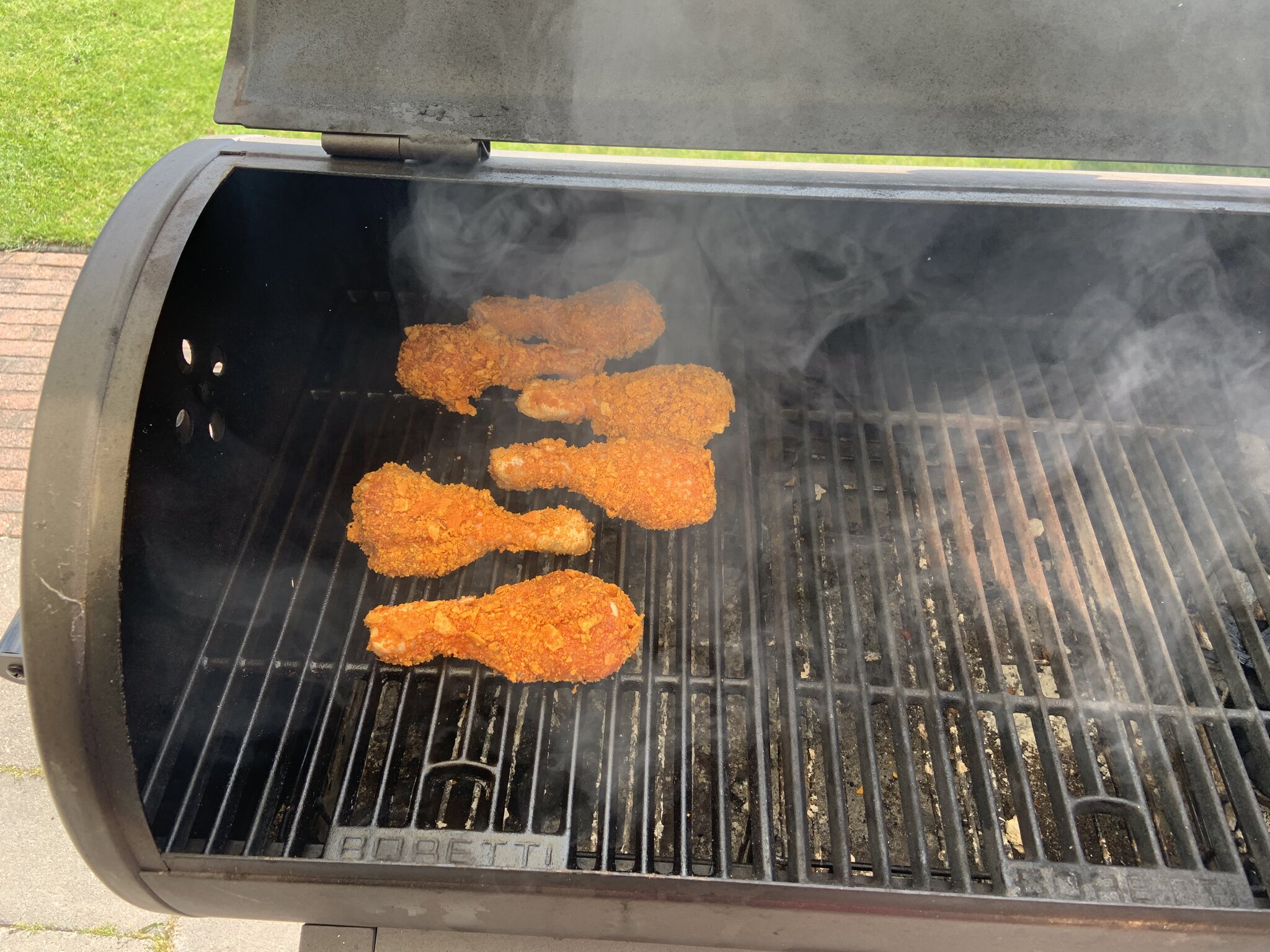Qua smaak echt super, alleen bleef bij ons een kwart van de dorito-korst aan het rooster kleven en liet ongeveer een kwart los bij het oppakken van het rooster, viel er gewoon af. De drumsticks waren intern al over de 85 graden dus het was niet undercooked. Enige idee? Te veel/te weinig aioli?