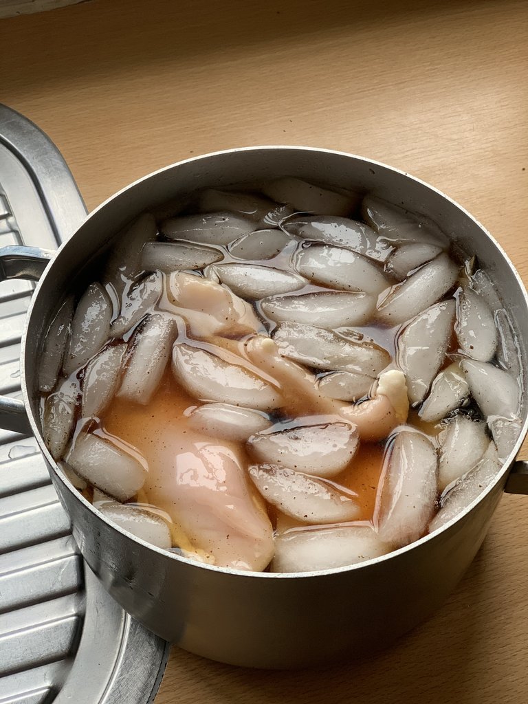 Zoiets wilde ik ook maken. De bedoeling was om deze gisteren te maken, maar zoals vaker komt er wel eens wat tussen. Ik had ondertussen de kippendijen al in de marinade gezet. De marinade bestond uit knoflook, gembersiroop, ketjap, olie en peper en zout. Het kippetje heeft er wat langer in gelegen dan de bedoeling was maar dat was geen enkel probleem. Ze had geen plannen dit weekend.