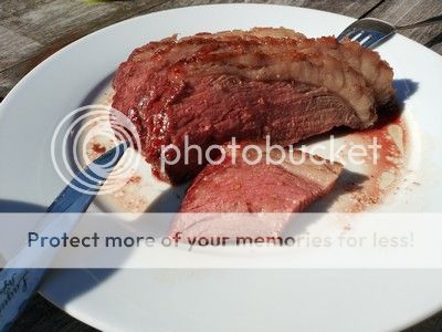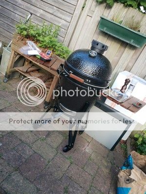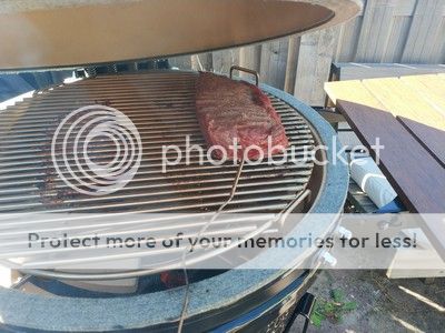 Hierbij mijn foto's van dit heerlijke stukje vlees van de kamado die toen nog maagdelijk schoon was