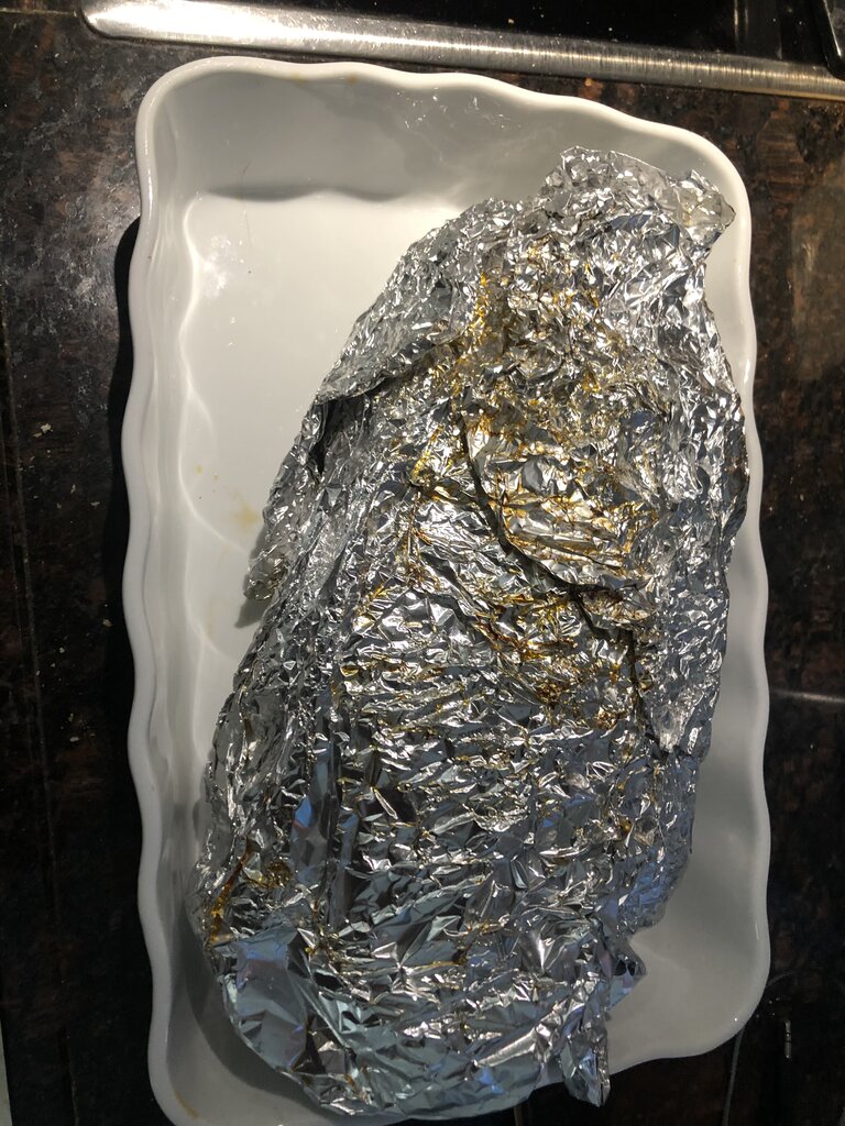 Vervolgens mij 70 graden, nog even gauw een foto voor hij in alu folie ging.