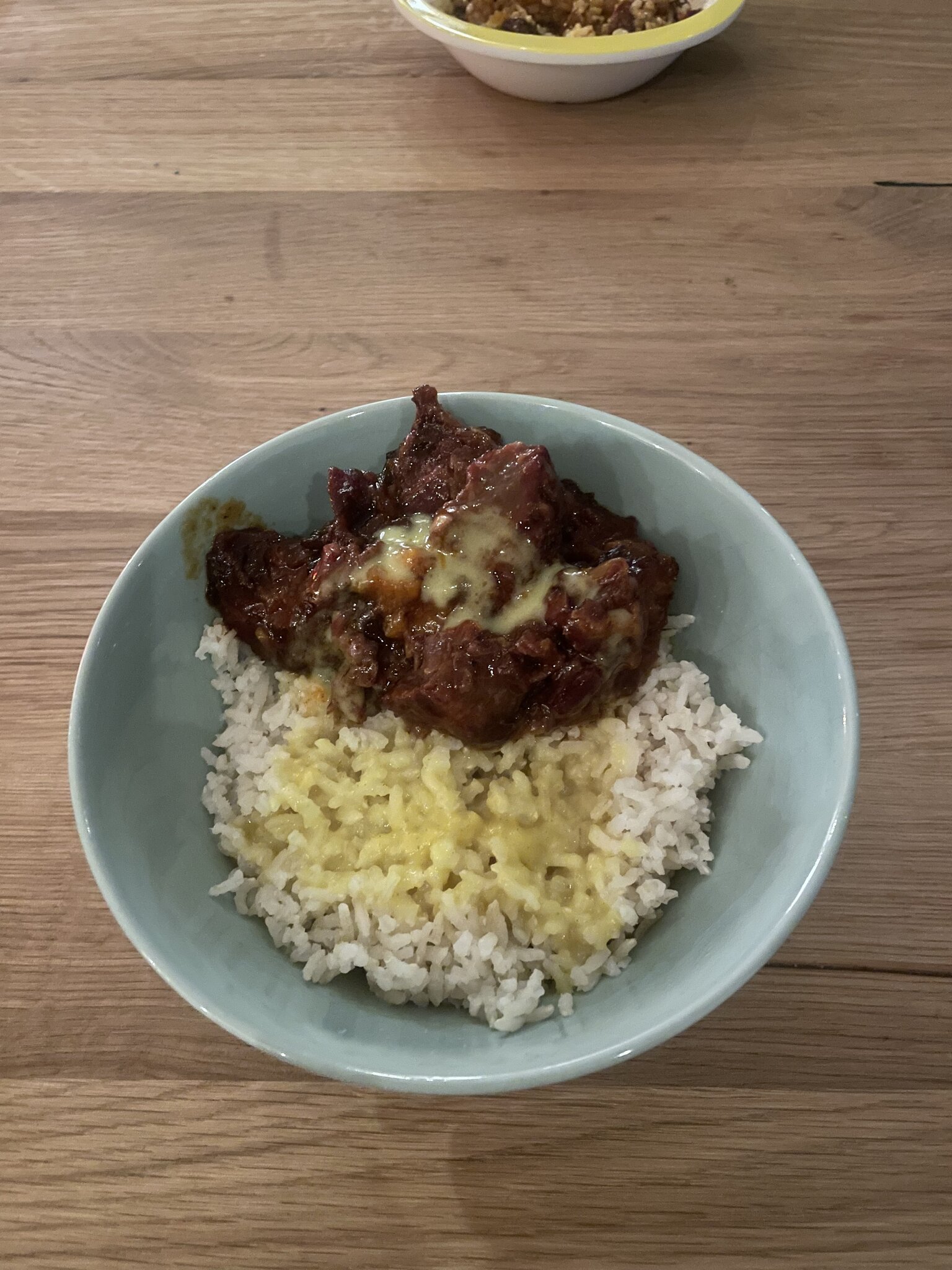 Na een kleine twee uur stoven, was de stoof klaar en konden we aan tafel!