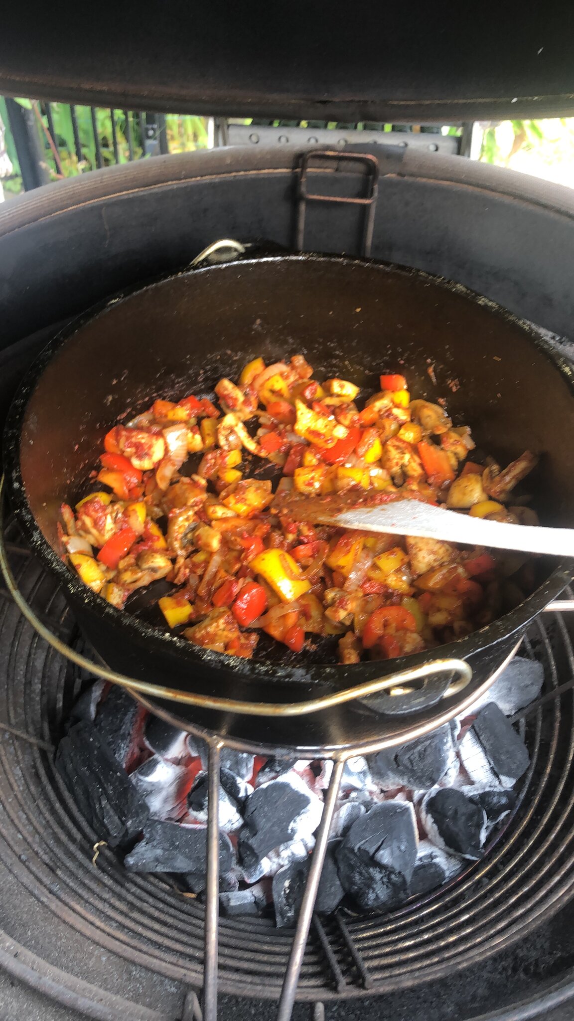 Van mijn neef heb ik een dutch oven gekregen. Gisteren heb ik de DO ingebrand. En vandaag aan het kokkerellen geslagen. Ik was benieuwd hoe het zou gaan met de temperatuur en of er niets zou verbranden. Maar dat ging allemaal gelukkig prima.